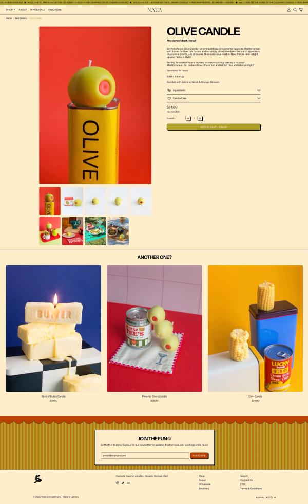 Nata Concept StoreIn 2018, Anna and Tatiana began crafting candles in their London apartment purely for enjoyment, while working desk jobs and running a vintage store as a side hustle. Their very first food candle resembled a stick of butter. It melted in an unusual way, had a delightful scent, and brought them joy, but it also ignited a creative spark. That simple kitchen experiment evolved into Nata Concept Store, a whimsical brand now available at Le Bon Marche, Bloomingdale’s, and various shops worldwide. They’ve even partnered with Toblerone and Minor Figures. Their creations merge humor, design, and skilled craftsmanship. What sets Nata apart is their commitment to not taking life too seriously.