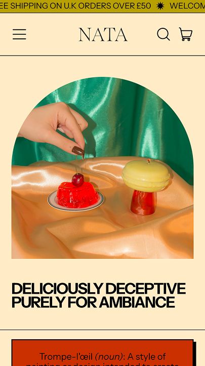 Nata’s guiding principle is straightforward: design should bring joy. Drawing inspiration from the French art of trompe-l’œil, their soy wax candles balance realism with whimsy. “Food is such a significant aspect of our culture,” they shared. “We aimed to merge design with something joyful and relatable.”